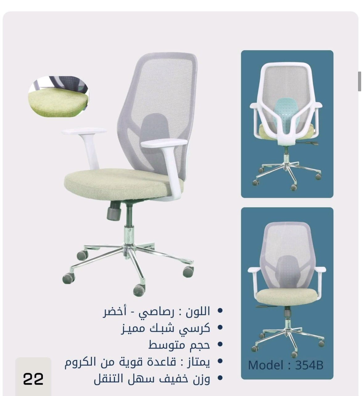 This sleek and modern mid-back office chair, Model 354B, is designed to bring a fresh, comfortable, and stylish look to your workspace. Featuring a combination of a grey mesh back and a vibrant green seat, this chair is both aesthetic and highly functional. Its lightweight design and sturdy chrome base make it easy to move and durable for daily use.